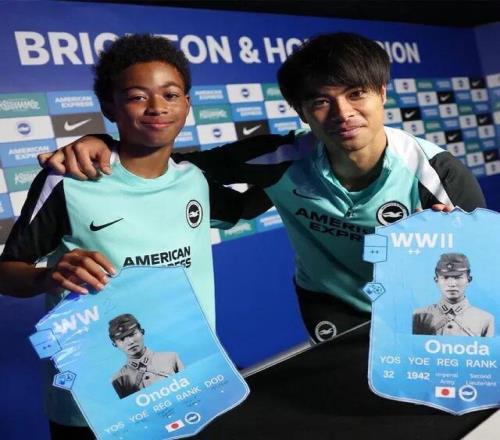 大陆网易号“笑男聊体坛”指出,布莱顿当时让青训小球员搜集一战人物故事做成足球卡片,“结果有位这名小球员竟然选日本二战‘最后鬼子兵’小野田宽郎,并找日本国脚三笘薰合影,两人都拿着小野田宽郎的卡片。”