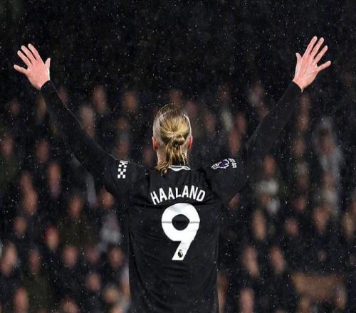 比赛正式开打后,曼城就大举压上围攻富勒姆,第6分钟哈兰德就差点帮助球队取得梦幻开局,可惜低射击中立柱被弹出,不过第17分钟,挪威魔人还是接到多库左路传中后,禁区内扫射破门,帮助曼城取得了1-0的领先,凭借此球哈兰德只用了111场英超比赛就打进了100粒进球,创造了英超历史最快百球纪录。