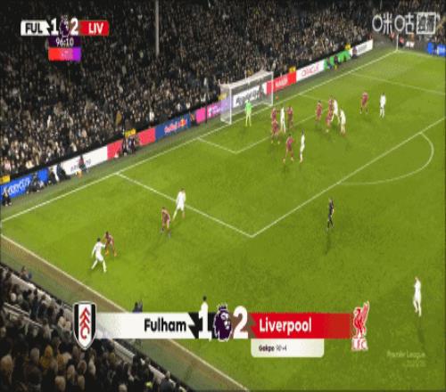 比赛第77分钟,利物浦逃过一劫。富勒姆球员威尔逊吊射空门,皮球击中横梁弹出被解围。