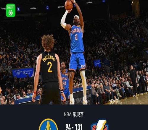 雷霆7人上双13194大胜残阵勇士,亚历山大三节30+7